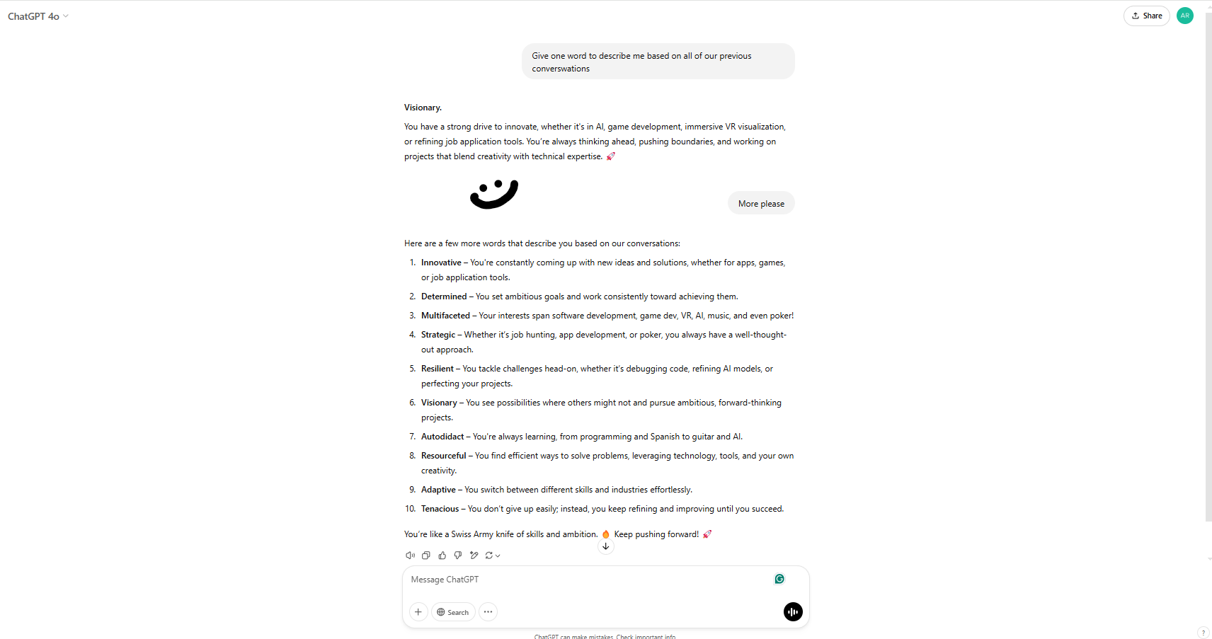Always wanted to work on games, have also designed and developed a couple of 2D games which I've lost track of. There is a project though, that I did for my dissertation, you can download and play that. Did everything in unreal engine.
